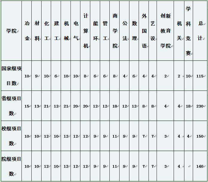 大学生创新创业训练计划项目实施及结题验收情况,经研究决定,各单位推荐项目数指标数如下:
