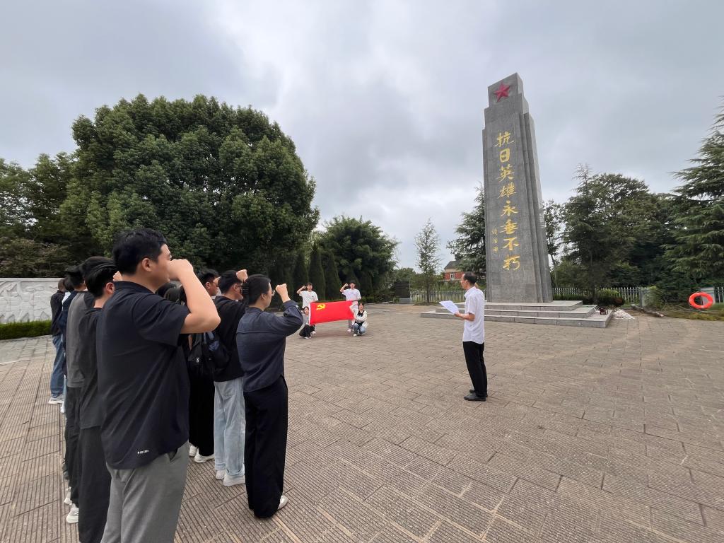 丁忠利在抗日烈士纪念碑前为全体党员讲授了一堂专题党课,党课上,全体师生党员重温了习近平总书记在中国人民抗日战争暨世界反法西斯战争胜利80周年阅兵式上的重要讲话精神,整个党课从“铭记历史,从苦难辉煌中汲取精神力量;缅怀先烈,以初心使命照亮前进道路;担当使命,以英雄精神育时代新人”等三个方面展开,强调全体师生党员要以革命先烈精神为引领,将爱国主义、抗战精神、英雄精神融入到教育教学和人才培养的全过程,着力培养担当强国建设和民族复兴大任的时代新人,让革命先烈精神在立德树人的光荣使命中永续传承。全体师生党员要在思想、行动和作风上,持续深化理论武装,久久为功地锤炼党性凝心聚魂,主动投身实践淬炼本领,自觉勇担先锋使命,争做作风建设的引领者和践行者。