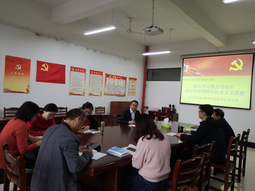 10月23日上午,电气成人动漫 实验中心全体党员参加“不忘初心、牢记使命”主题教育学习会,成人动漫 党委书记叶凤华以“深入学习习近平新时代中国特色社会主义思想,做新时代合格的大学教师”为题,为大家上党课。
