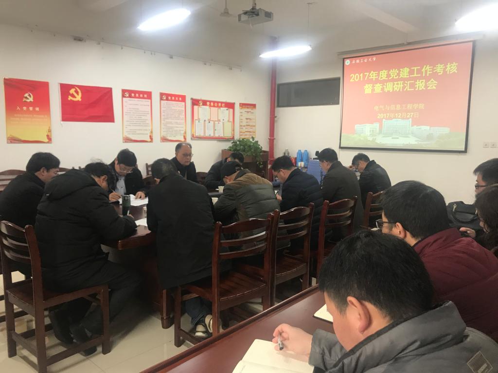 12月27日下午,校党委常委、组织部部长刘明,纪委副书记、纪委办公室主任、监察处处长王俊,校办机要信息科科长戴少刚一行,到电气与信息工程成人动漫 督查调研2017年度基层党建考核工作。学党政领导、党支部书记、党务秘书参加了督查调研会。