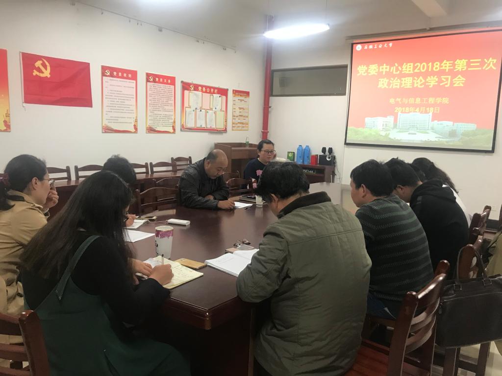 为全面贯彻落实学校2018年全面从严治党工作会议精神,418日下午,电气成人动漫 党委在电气楼304会议室召开中心组理论学习会,传达学习全面从严治党工作。成人动漫 党政领导、党委委员、党支部书记、科级干部、工会主席和全体辅导员参加会议会议由院党委副书记、副院长郭宏主持。