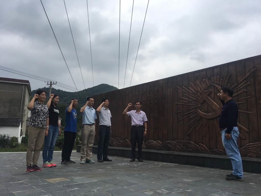 在中分村新四军三支队司令部旧址,同志们详细了解了新四军三支队发展壮大、英勇抗日的战绩,了解了谭震林在中分村带领战士战斗的经历。一幅幅珍贵的照片,一篇篇翔实的史料,一件件真实的文物让党员们重温了中国共产党领导中国人民取得革命成功的光辉而曲折的历程。最后全体党员在游书记带领下情不自禁地面对党旗重温了入党誓词。