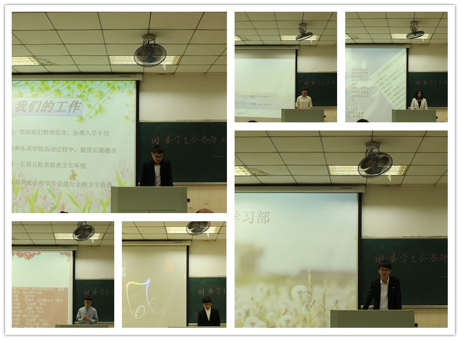 大会在主持人热情洋溢的致词中拉开序幕。院团委副书记胡聪聪率先发言,结合自己三年来的学生会工作,她以学生会普遍存在的“三类人”向在座同学传递了学生会工作、专业学习、个人生活三者关系的处理方法,学生会工作经验以及大学生活的心得体会。接着,学生会15个部门代表紧紧围绕围绕部门建设、特色活动、心得体会三个板块先后上台做汇报展示。在汇报过程中,各部门精心准备,紧密结合部门特色展开汇报,充分展现了成人动漫