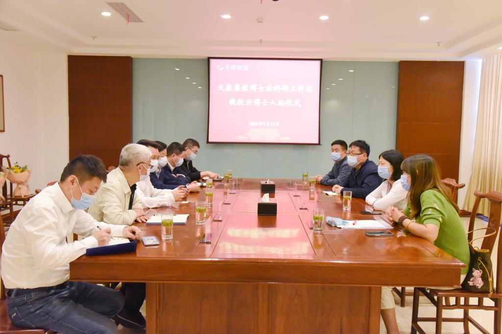 钱牧云博士进驻集团博士后科研工作站举行入站仪式。安徽天康集团党委副书记、总经理毛文章出席仪式并讲话,集团监事会主席李劲松等相关部门负责同志参加了仪式。