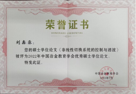电气工程专业刘鑫淼的硕士学位论文《非线性切换系统的控制与滤波》成功入选,论文指导教师为成人动漫