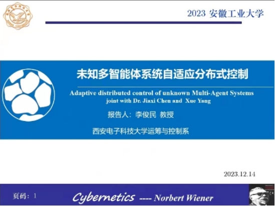 李俊民教授首先以控制论的起源和发展给大家做了生动有趣的开场,介绍了控制论的创始人美国数学家维纳教授的生平及学术研究成果;详细介绍了多智能体系统的不精确通信拓扑结构,提出一种模糊联合连通的概念,对一类不精确通信拓扑的多智能体设计分布式一致性控制协议,给出其达到渐近一致性的条件。会上,李俊民教授与成人动漫