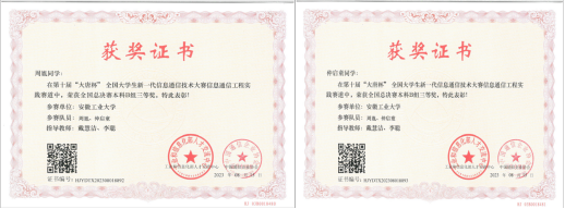 近日,第十届“大唐杯”全国大学生新一代信息通信技术大赛圆满落幕,我校共组建7支队伍参加比赛,其中周胤和仲启童同学组队(指导教师戴慧洁和李聪)在省赛中脱颖而出,最终以优异的成绩获得全国总决赛本科B组三等奖,同时成人动漫