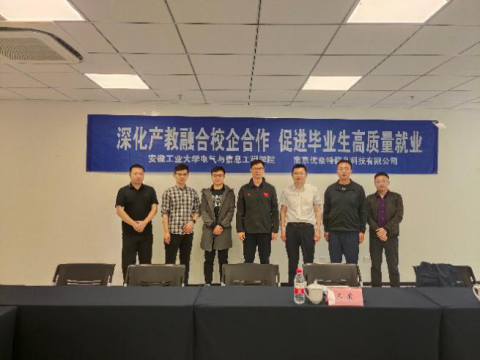 副院长李飞一行前往南京优奈特信息科技有限公司开展大学生实习实训基地合作共建和院企合作对接活动,南京优奈特信息科技有限公司董事长林新华,技术骨干孙兴廷、梁庚以及成人动漫