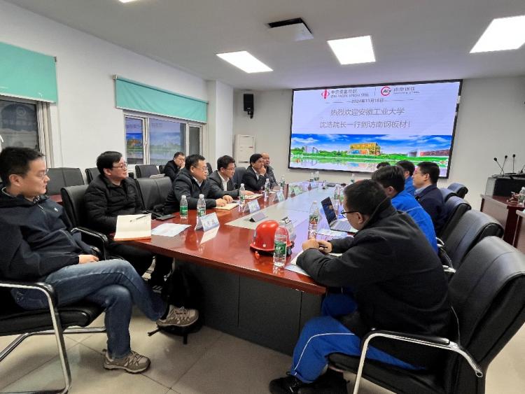 院长沈浩教授、副书记李克明、科研副院长程木田教授等一行赴南京钢铁集团有限公司推进产学研对接活动,旨在加强双方在冶金技术领域的先进技术应用合作研究。南钢集团总裁助理、制造部部长王润泽、板材事业部总经理周桂成、中厚板卷厂领导等参加对接交流活动,活动由板材事业部设备处处长程鑫祥主持。