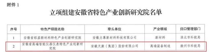 近日,安徽省科学技术厅对首批省级特色产业创新研究院进行立项公示,由安徽天康(集团)股份有限公司牵头、安徽工业大学电气与信息成人动漫