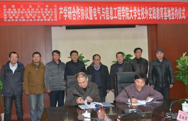 大学生校外实践教育基地签约仪式在我校佳山校区会议中心举行,马鞍山市经济和信息化委员会副主任王黄来,安徽皖南电机股份有限公司等五家知名企业的领导,我校副校长葛芦生、教务处等相关职能部门负责人,电气成人动漫