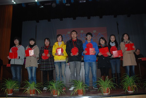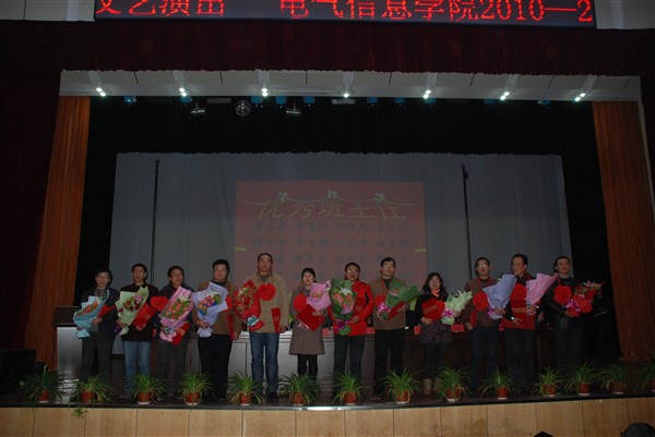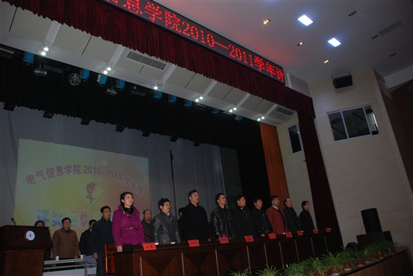 2010-2011学年度学生评奖评优表彰大会在东区新大学生活动中心隆重召开。校就业指导中心黄勇主任,组织部王俊副部长,学工部季爱华副部长,校团委窦贤琨副书记,电气信息成人动漫