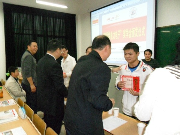 11月5日上午 事特-安徽工业大学2011年电力电子奖学金颁奖典礼在东校区电气楼113教室隆重举行,易事特电源股份有限公司董事长何思模先生,电气信息成人动漫