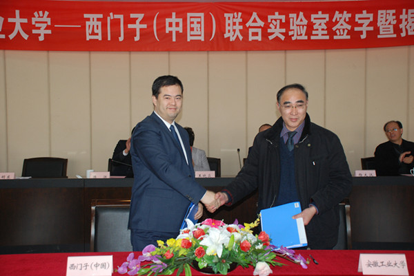 2011年12月22日上午,安徽工业大学与西门子(中国)有限公司共同建设的“先进自动化技术实验室及过程装备与控制工程研究中心”签字揭牌及仪式在风景秀丽的安徽工业大学会议中心举行。安徽工业大学、西门子工业自动化集团,以及应邀前来的马鞍山市政府的领导及学校校办、宣传部、规划处、教务处、科研处、财务处、研究生成人动漫