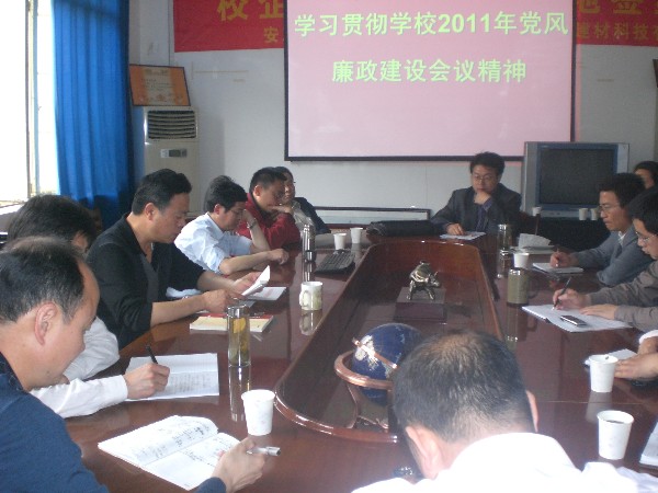 党委书记孙世民他介绍了4月28日召开的2011年学校党风廉政建设工作会议的情况,传达学习了胡锦涛总书记、贺国强同志在中纪委十七届六中全会上的讲话精神,学习了省纪委书记王宾宜、省教育厅长程艺在省教育工委、省教育厅学习贯彻中央纪委十七届六中全会上的讲话内容、校党委书记兰玉杰、校纪委书记张国宝在校党风廉政建设工作会议上的讲话精神