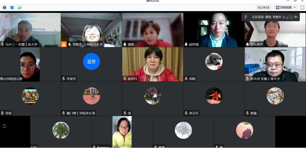 在会上,老师们就各自高校电路原理课程的教学概况,教学改革和探索进行了交流。程木田代表安徽工业大学进行了交流发言。他首先从学时分配、教学内容、考核方式和教学团队等方面进行了简要的介绍;接着就电路课程教学的“痛点”问题着手,强调了近几年安徽工业大学电路教学团队针对问题进行的课程教学改革,突出了以学生为中心,瞄准工程认证和一流专业建设的教学实践和探索,分享了电路理论课程教学改革成效以及线上教学质量监控方案,受到了与会老师的高度好评。