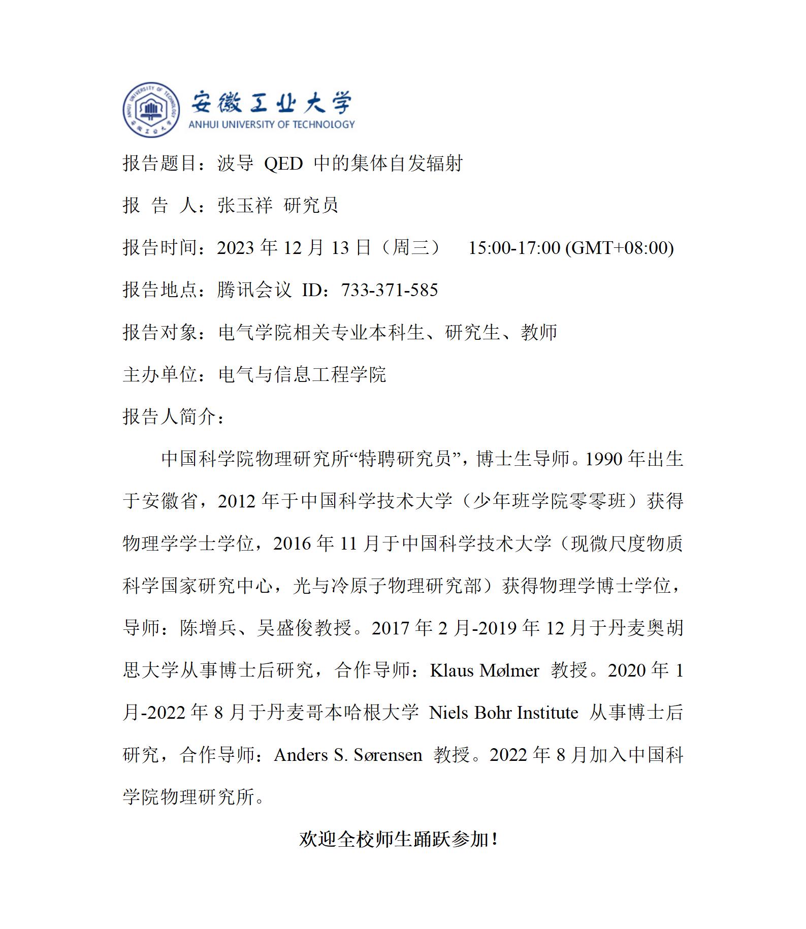 “谦之”学术讲坛之六十-波导 QED 中的集体自发辐射