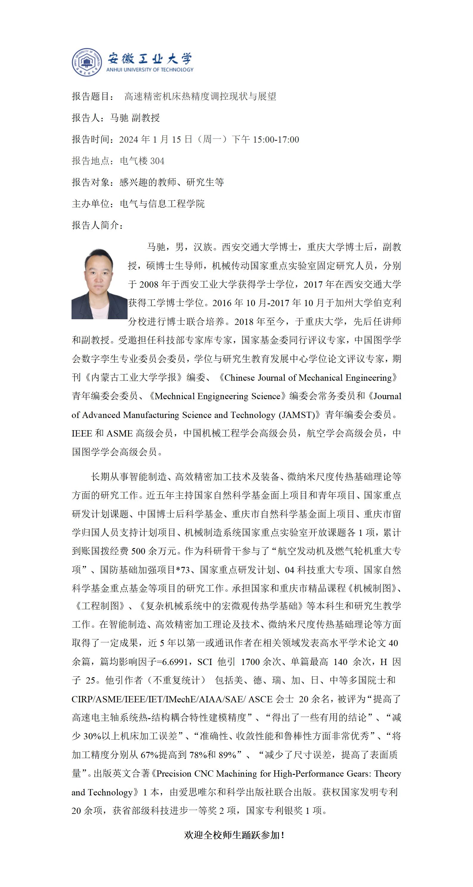 “谦之”学术讲坛之七十二-高速精密机床热精度调控现状与展望