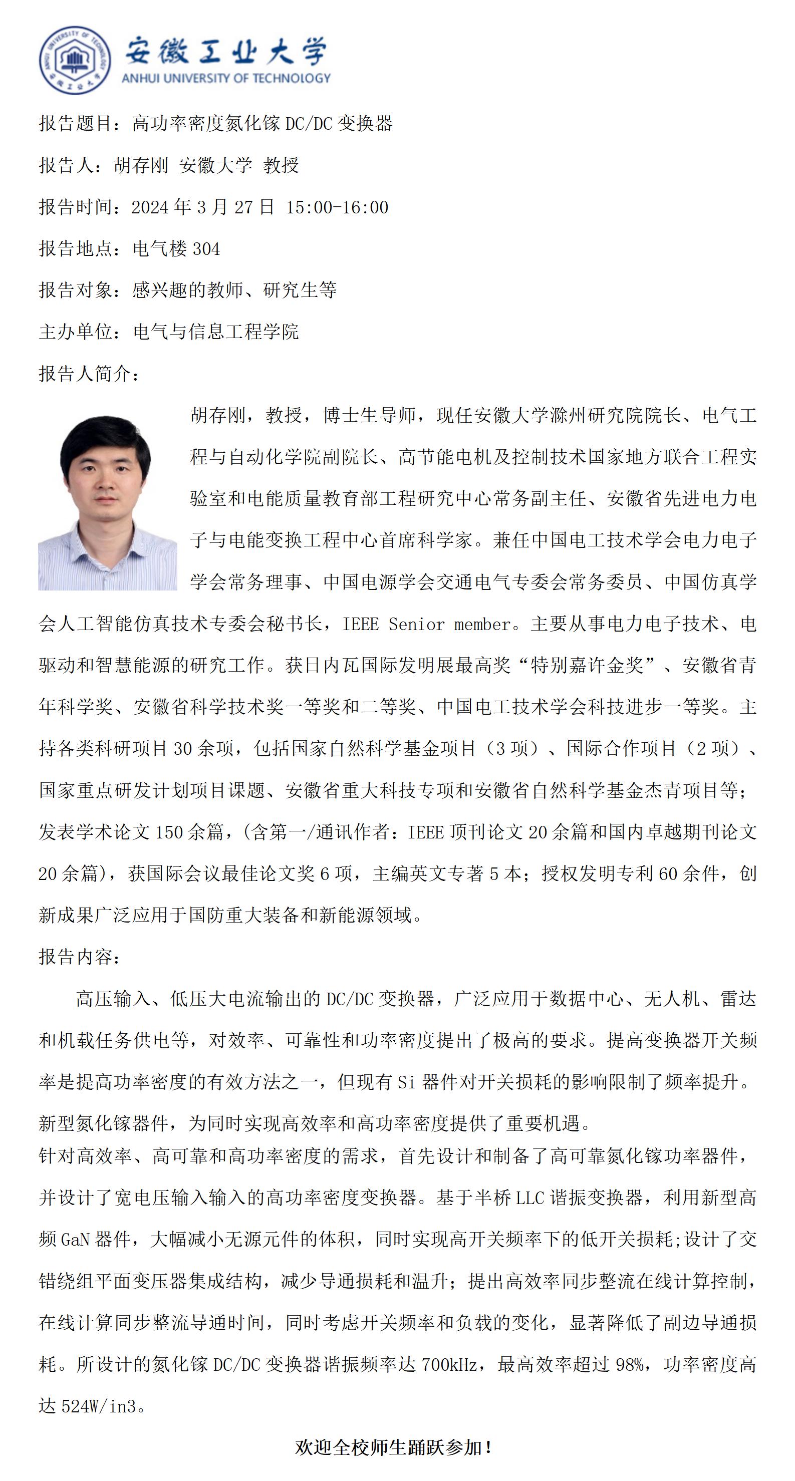 “谦之”学术讲坛之七十七-高功率密度氮化镓DC/DC变换器