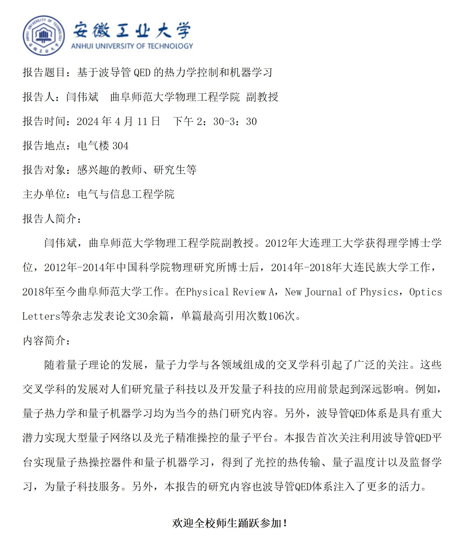 砺山学术报告之三十二-基于波导管QED的热力学控制和机器学习