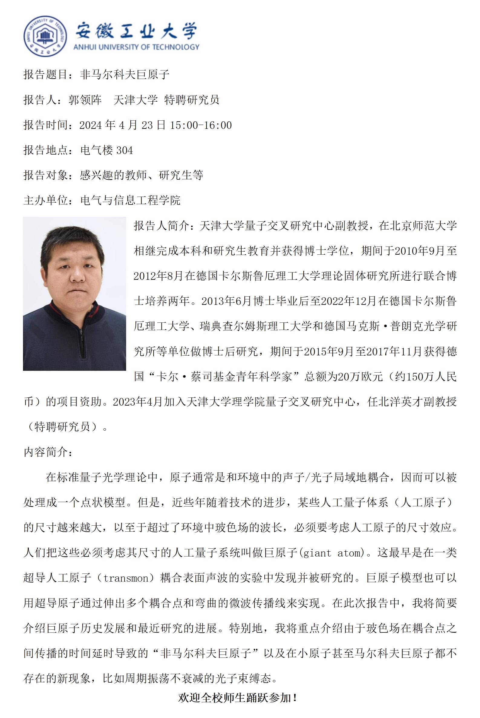 “谦之”学术讲坛之八十三-非马尔科夫巨原子