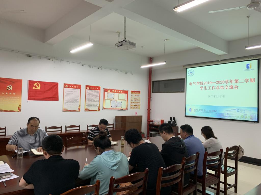 学期学生工作总结交流会在电气楼304会议室召开,院党委书记叶凤华,院党委副书记、副院长、纪委书记夏玉钦和各年级辅导员参加会议,会议由夏玉钦主持。
