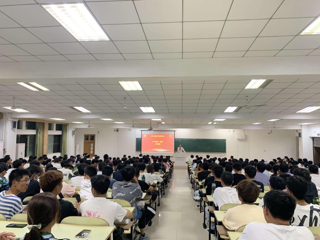 党委书记丁忠利主讲,院团委书记李修正、2022级辅导员甘如美江及全体新生参加。