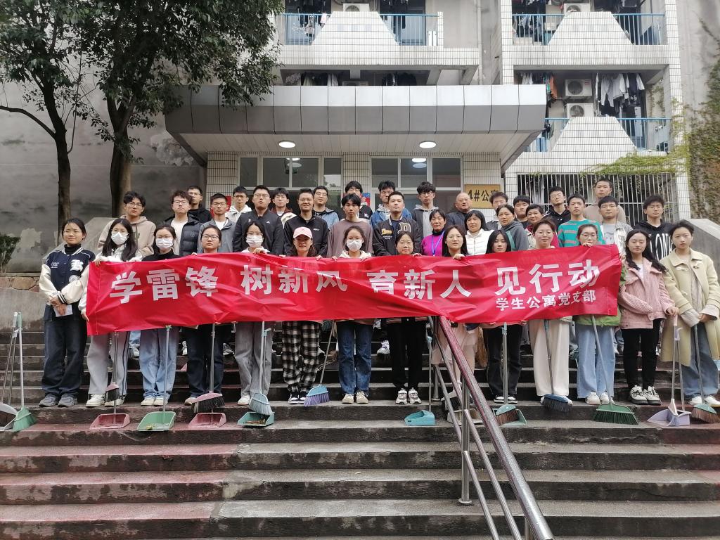为营造文明、安全、舒适的宿舍环境,提升青年大学生的劳动实践意识,进一步弘扬雷锋精神。4月3日下午,成人动漫 组织2022级入党积极分子、学生志愿者联合后勤处学生公寓党支部开展“学雷锋实践志愿服务”活动,对佳山校区4号公寓楼内及周边区域进行清洁。