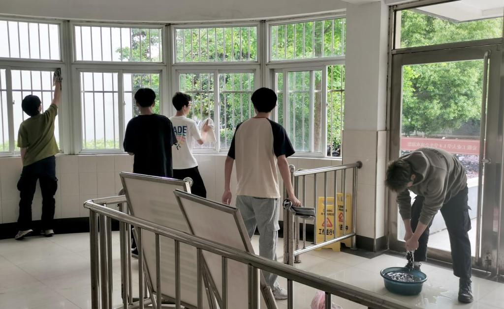 活动中,学生们分为两组,一组负责学生公寓院子里的树叶清扫,一组负责学生公寓一楼大厅窗户和大门的清洁。在近一个小时的清扫过程中,学生们不畏辛苦,以饱满的热情投入到劳动中,经过努力,学生公寓的面貌焕然一新。参与活动的学生纷纷表示,在今后的学习生活中将继续弘扬党员的奉献精神,加强服务意识,争取做一名奋斗有为、不负时代重任的优秀学生党员。