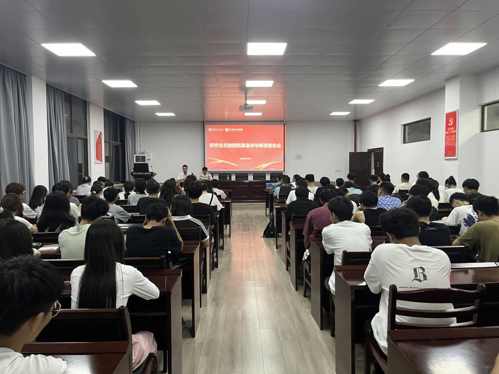 在秀山校区电气楼113教室开展研究生支教团招募宣讲与事迹报告会,会议邀请校第二十四届研究生支教团团长李畑昕主讲,各学生支部党员、入党积极分子、团委学生会干部代表参加,会议由院团委副书记杨恒基主持。