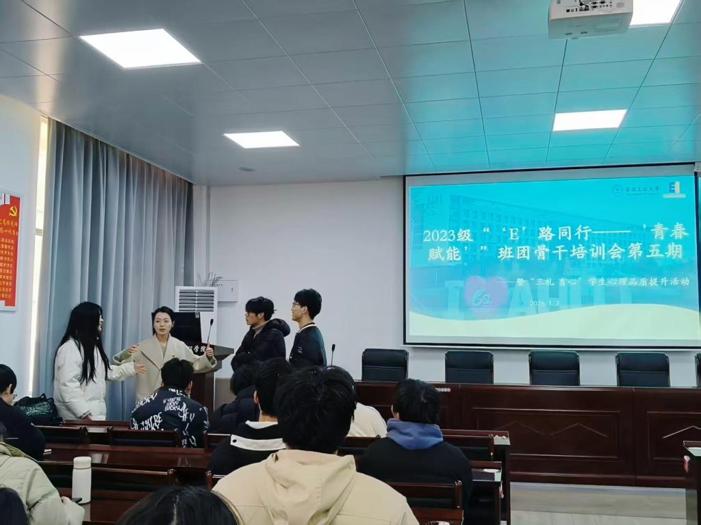 在电气楼113举办2023级“‘E’路同行——青春赋能”班团骨干第五期培训暨“三礼·育心”学生心理品质提升活动。本次培训紧紧围绕“践礼·砺能”高阶目标,着力提升学生骨干的心理互助意识、团队协作与组织引领能力。2023级全体团支部书记参与培训,成人动漫