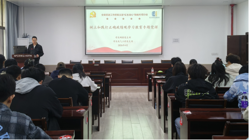 学生测控党支部与学生电气工程党支部联合开展树立和践行正确政绩观学习教育专题党课。党课由学生测控党支部书记杨恒基主讲,两个支部全体党员及发展对象参与学习。